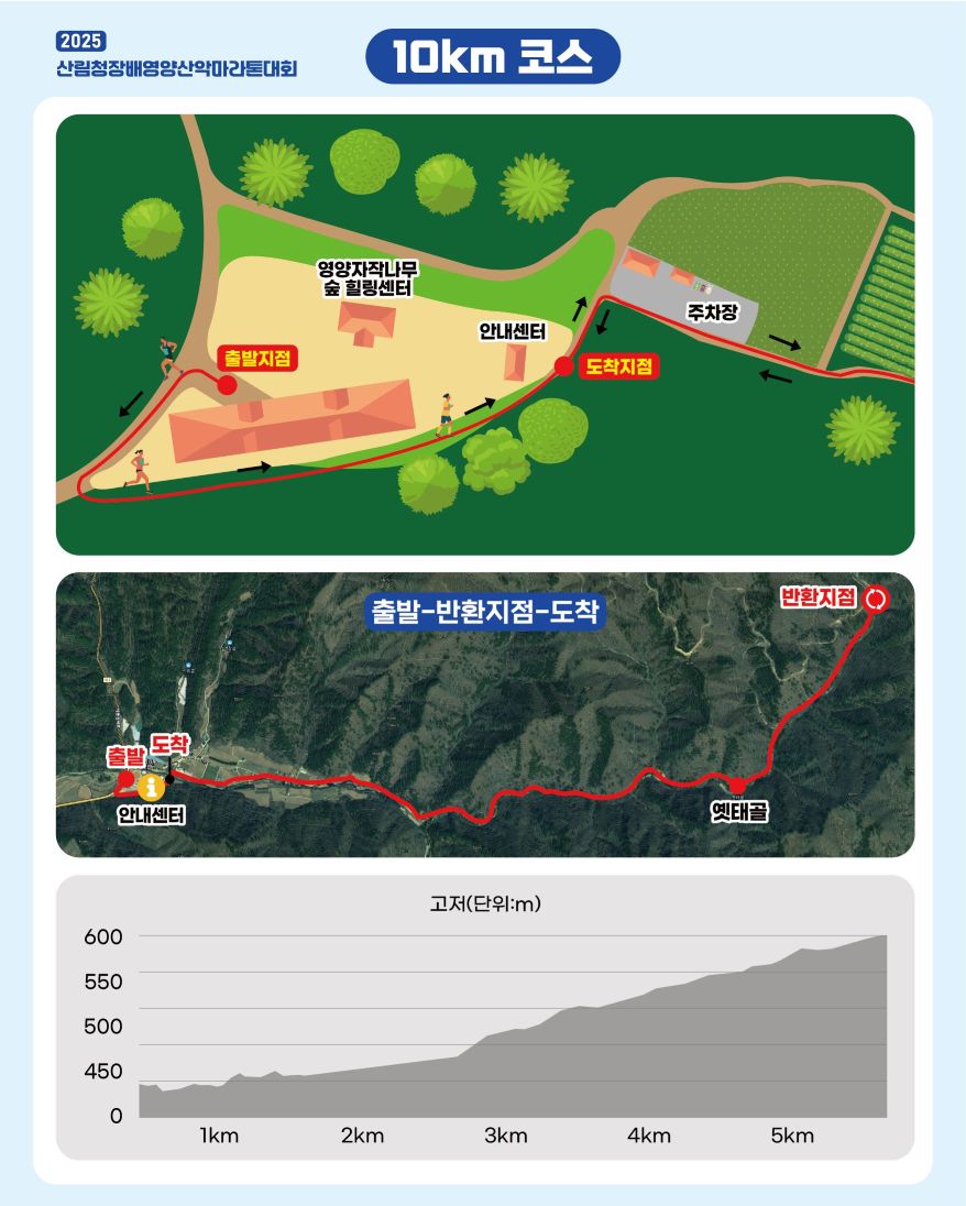 참가자 여러분께 안내드립니다.2025 산림청장배 영양전국산악마라톤대회는 일부 코스가 변경되어 운영됩니다. 기존에는 출발 이후 우측 방향으로 진행되던 코스가, 현장에서 유도요원과 안내 표지판을 통해 코스 안내가 제공되며, 변경 사항 요약